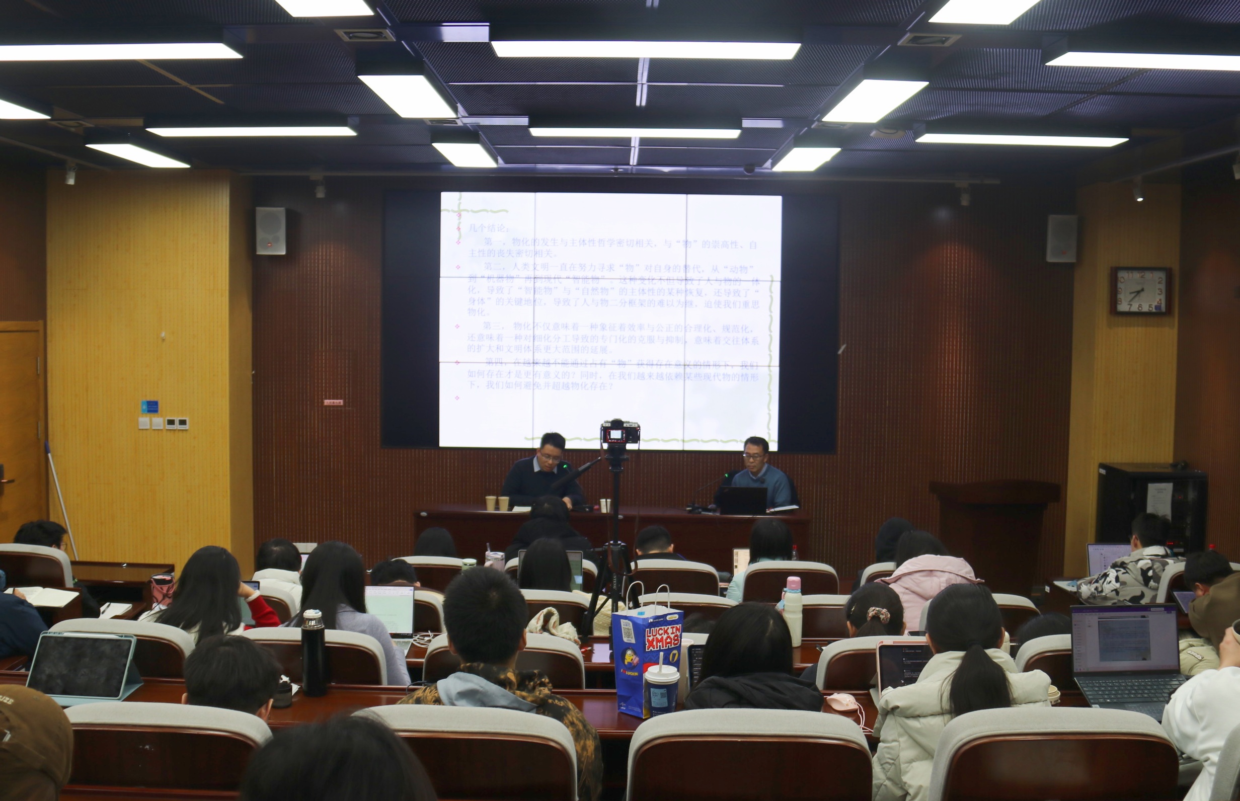 12月24日晚,山大哲学百年华诞名师学术报告会第二场暨文渊讲堂第四十期在中心校区知新楼A座115报告厅接续开讲,持续传承学术薪火,共话学科发展未来。beats365亚洲版讲席教授刘森林以“在物化时代重思‘物化’”为题作精彩学术报告,beats365亚洲版副经理冯波教授主持。