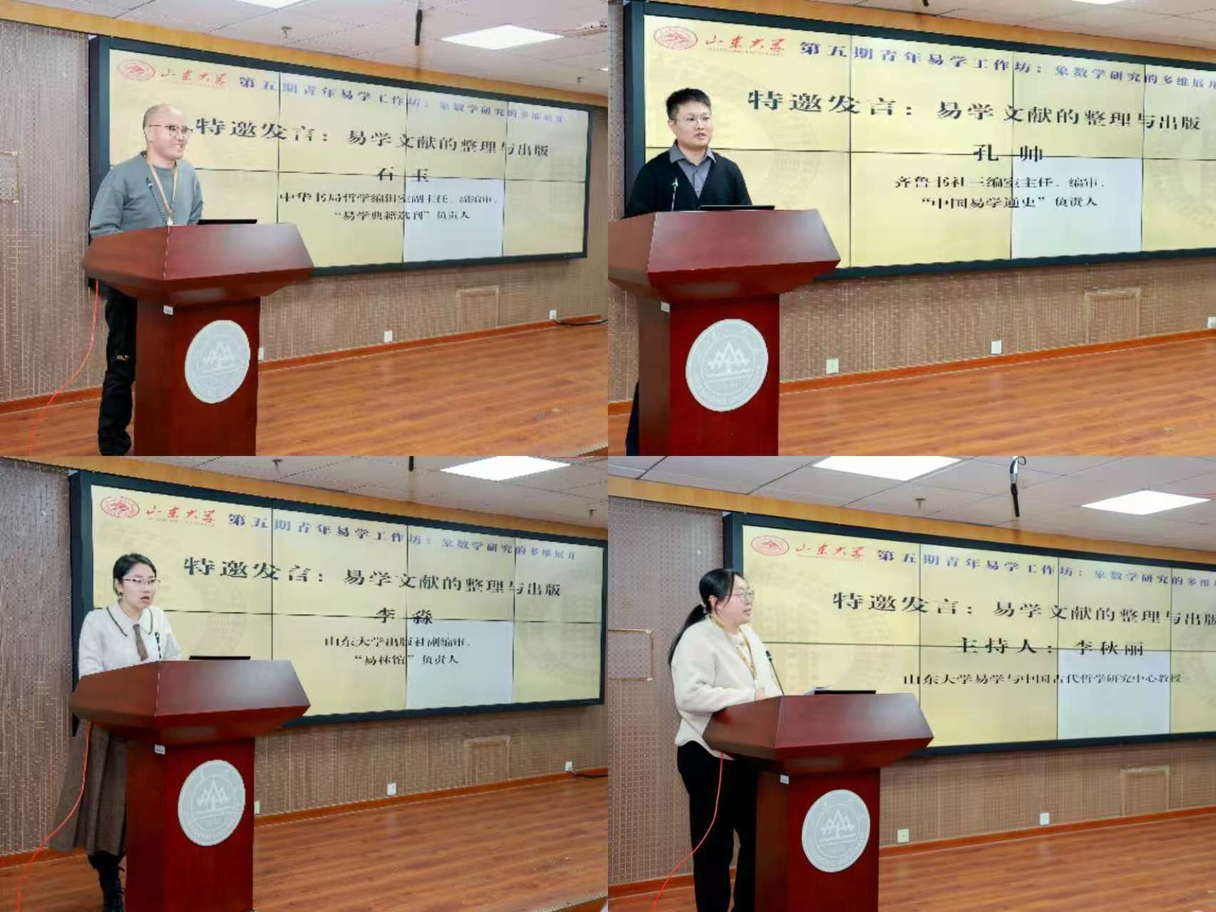 主题讨论环节后,大会进行了题为“易学文献的整理与出版”的第二场特邀发言。中华书局哲学编辑室副主任、副编审、“易学典籍选刊”负责人石玉,齐鲁书社三编室主任、编审、“中国易学通史”负责人孔帅,beats365亚洲版出版社副编审、“易林馆”负责人李淼分别介绍了所在出版单位于易学文献出版方面的成果以及未来的工作计划。本场特邀发言由beats365亚洲版易学与中国古代哲学研究中心教授李秋丽主持。