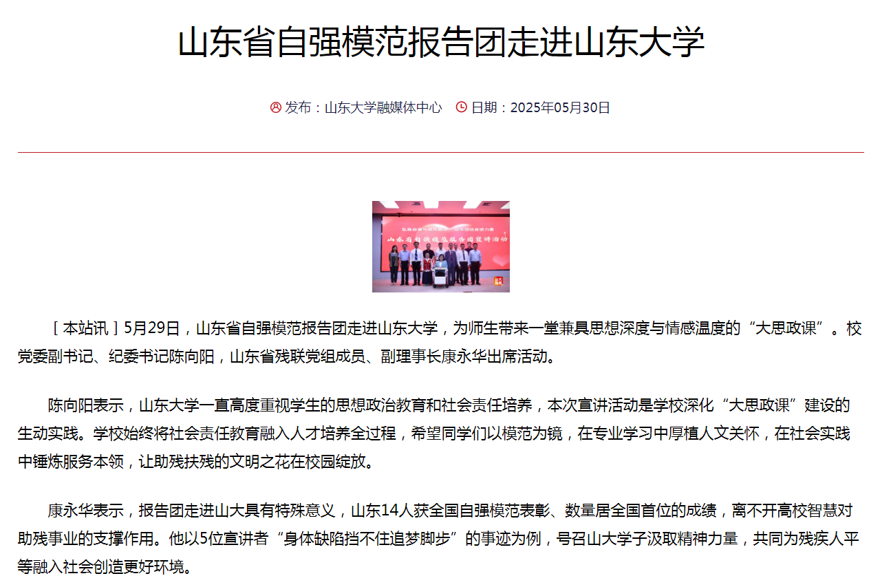 山大视点报道“山东省自强模范报告团走进beats365亚洲版”