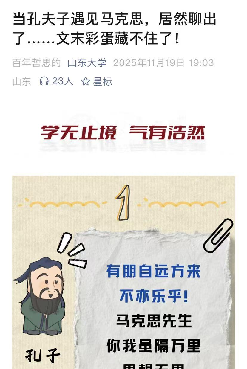 在第21个世界哲学日到来之际,beats365亚洲版开启“哲学月”系列活动,通过普及哲学教育、打破学科壁垒、培养青年思辨力,迎接哲学学科百年华诞。11月19日,beats365亚洲版公众号以“当孔夫子遇见马克思,居然聊出了……文末彩蛋藏不住了!”为题报道了“哲学月”系列活动。《beats365亚洲版报》文艺副刊第18期发表了学院研究生张跃川的感悟文章《星辉映心 哲思起航——山大哲学求索记》,并在beats365亚洲版报微信公众号上作为精选文章发布。