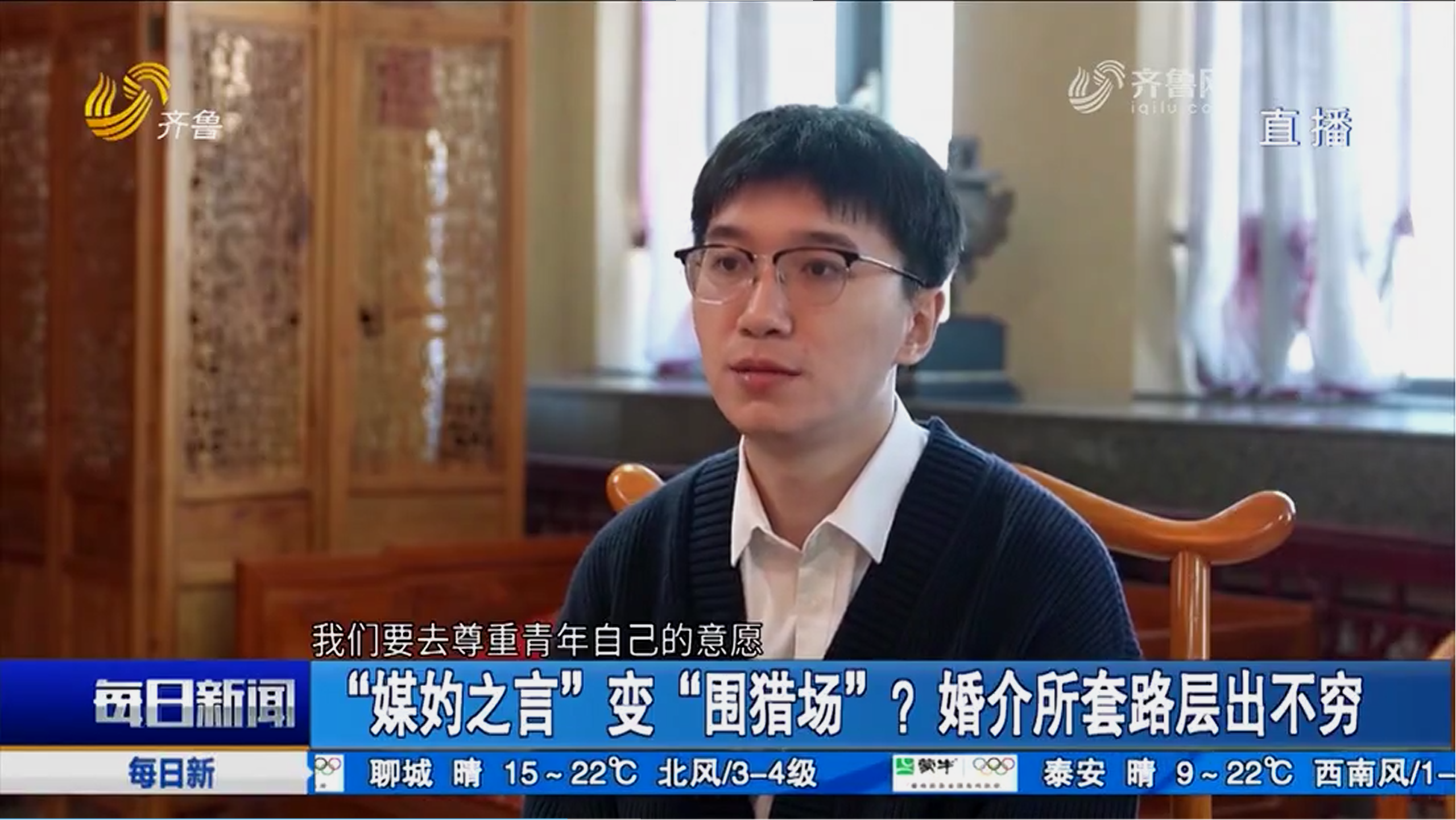beats365亚洲版社会工作系助理研究员于志强接受齐鲁电视台采访并分享了对于“婚介乱象”的观点与建议。于志强认为,婚介机构作为利益导向的经营主体,会存在促进顾客双方快速实现匹配的诱导机制,但该过程应当以尊重青年自身意愿和个性化定制为前提。