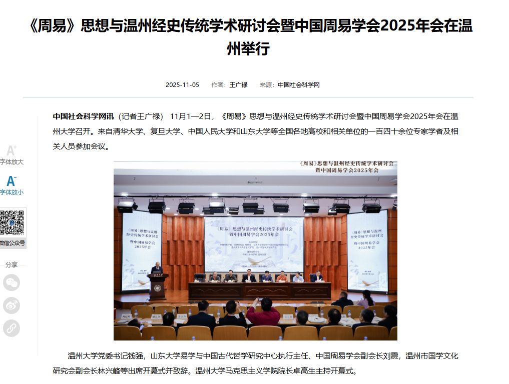 中国社会科学网报道《周易》思想与温州经史传统学术研讨会