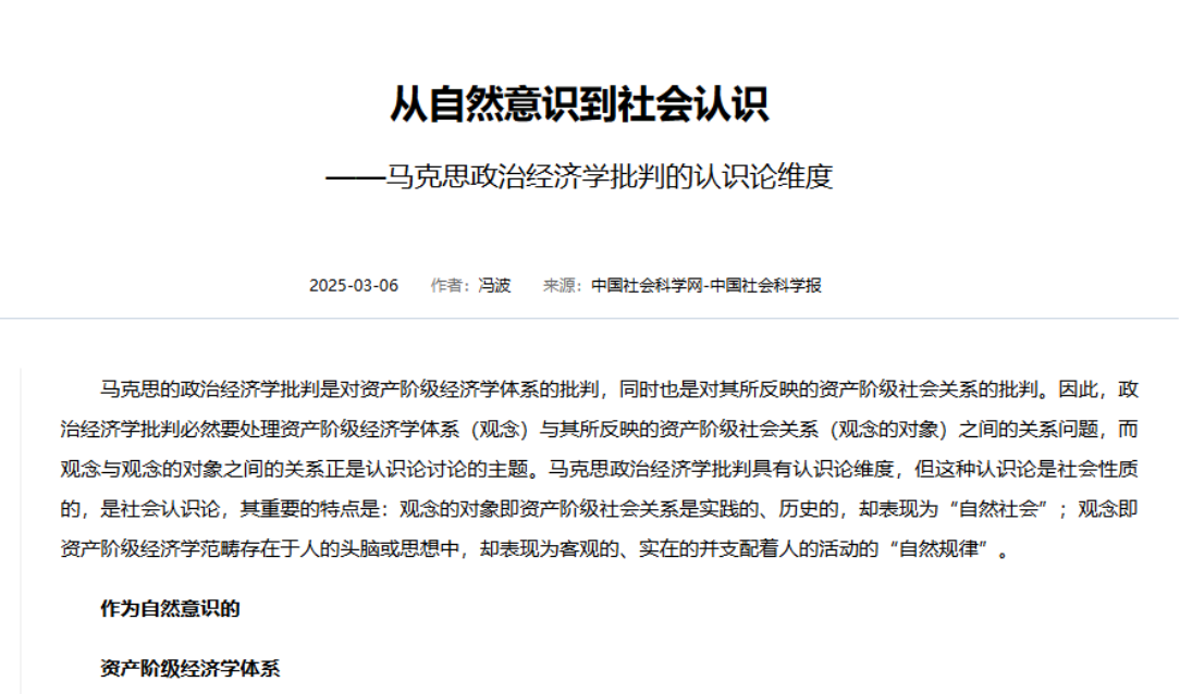 “从自然意识到社会认识——马克思政治经济学批判的认识论维度”文章