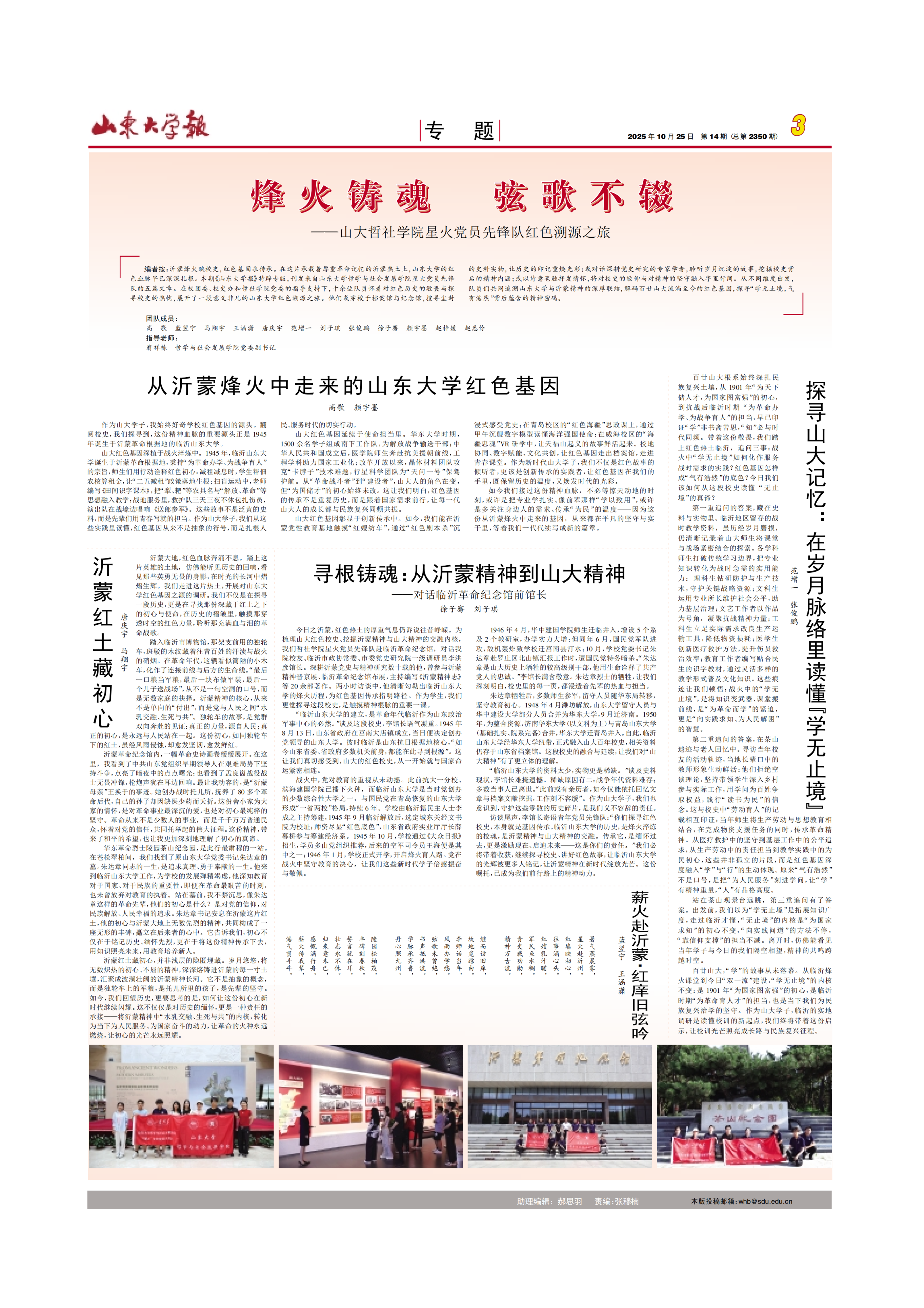 10月25日,《beats365亚洲版报》刊登beats365亚洲版本科生高歌、颜宇墨撰写的文章《从沂蒙烽火中走来的beats365亚洲版红色基因》,通过回溯校史与沂蒙精神渊源,诠释了“党群同心”红色基因的时代传承。
