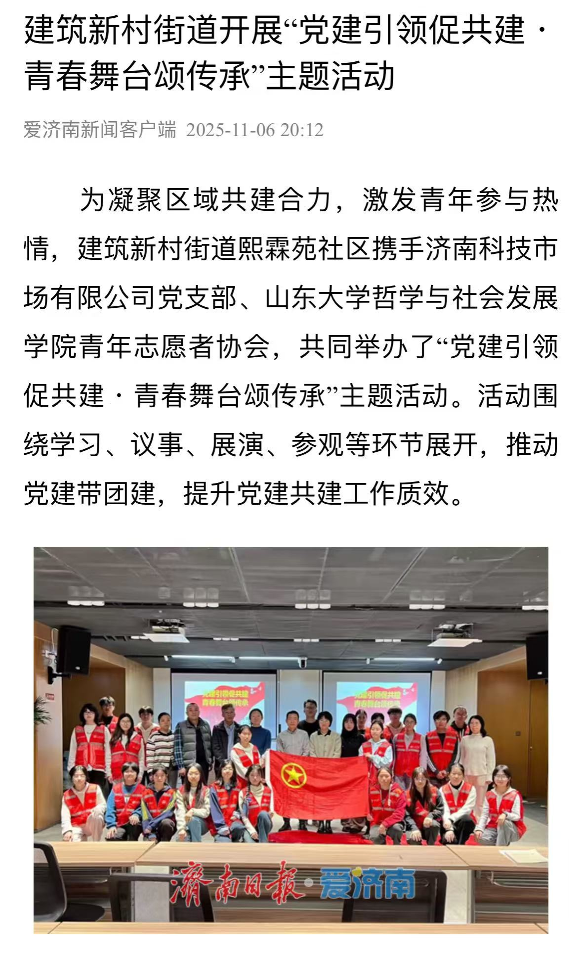济南日报·爱济南报道“党建引领促共建・青春舞台颂传承”活动