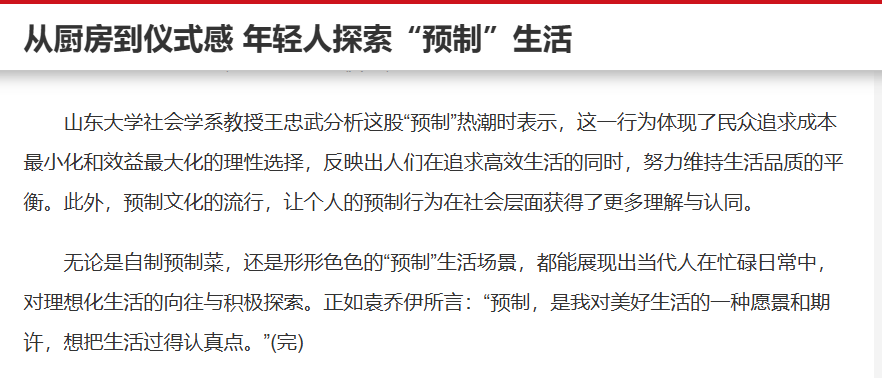 中国新闻网报道“从厨房到仪式感 年轻人探索“预制”生活”、