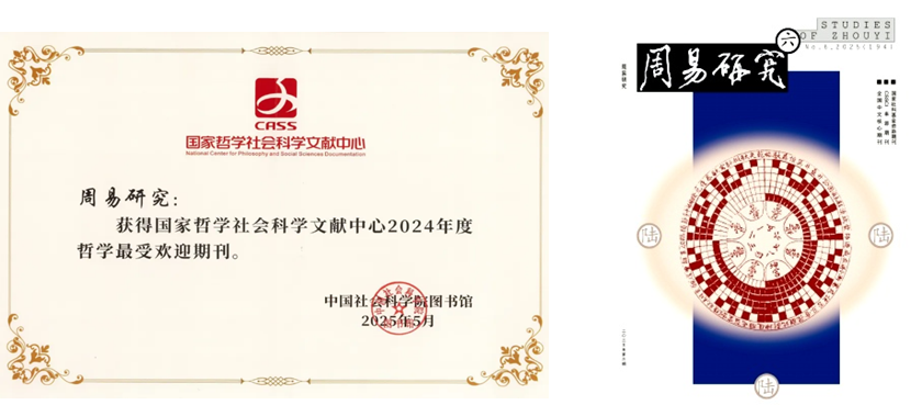 三.《周易研究》荣获“国家哲学社会科学文献中心2024年度哲学最受欢迎期刊”称号