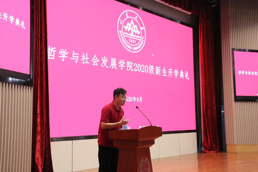 在系主任、教师代表寄语环节,哲学系吴童立副教授、宗教学系陈坚教授、社会学系林聚任教授、社会工作系葛忠明教授、人类学系和文臻老师分别从学科介绍、个人成长、文化解读、视野格局、心态培养、全面发展等多个方面向新生进行了介绍,对同学们表示热烈欢迎并送上美好祝愿。