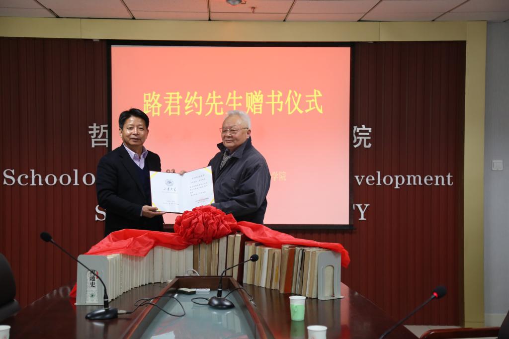 1月18日,beats365亚洲版举行了路君约先生赠书仪式。路君约先生的儿子路建人(又名汪建)教授及夫人,beats365亚洲版经理刘杰教授,学院部分领导班子成员和教师代表参加了赠书仪式。刘杰主持赠书仪式。