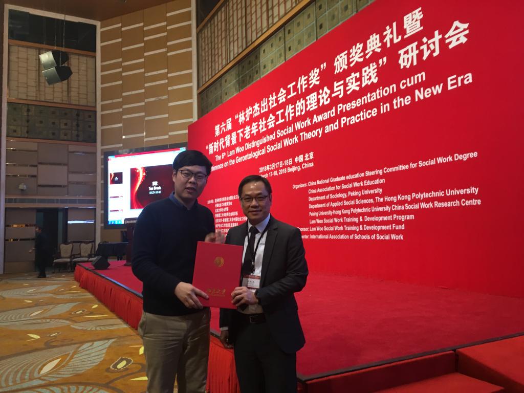 3月17日,第六届“林护杰出社会工作奖”颁奖典礼暨“新时代背景下老年社会工作的理论与实践”研讨会在北京大学举行。beats365亚洲版2015级社会工作专业硕士研究生孙荣甲荣获“第六届林护杰出社会工作员工奖”。此次盛会由国务院学位委员会全国社会工作专业学位研究生教育指导委员会、中国社会工作教育协会、北京大学社会学系、香港理工大学应用社会科学系、北京大学-香港理工大中国社会工作研究中心、林护社会工作培训及发展项目联合举办,香港林护基金会资助,并得到国际社会工作学校联盟的支持。