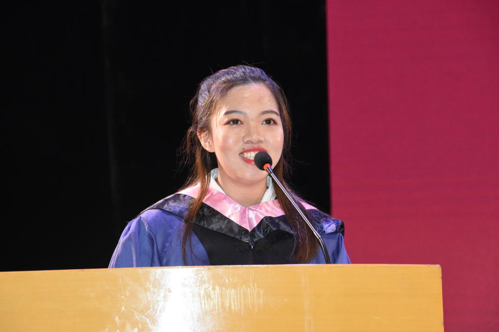 本科毕业生代表王明玉和研究生毕业生代表李佳琳分别回忆了她们在学校度过的多彩生活,并对同学们表达了对未来的祝福和希望。王明玉勾勒了“笃实好学、气有浩然、独立自信”三幅老员工活印象画笔,情到深处不禁潸然泪下。李佳琳则谈到了在beats365亚洲版的7年成长历程,表达了在未来要秉承beats365亚洲版优良传统,继续读书、思考,奉献新时代的信心和决心。