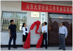 实地帮扶期间,高鉴国教授与5位社会工作专业硕士研究生结合当地留守儿童服务的重点工作开展专业实习。23日上午,在确山县福利中心举办“beats365亚洲版社会工作专业实践基地”挂牌仪式。确山县人民政府副县长王月红、beats365亚洲版副经理陈坚教授共同为“beats365亚洲版社会工作专业实践基地”揭牌。县民政局局长胡中全、社会工作系主任高鉴国教授,县福利中心工作人员和社会工作专业硕士研究生一起参加了挂牌仪式。