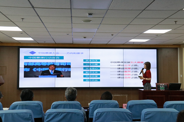 会议最后,孔岑从“慕课”课程实际操作要求的角度谈到了线上课程建设的目标规划,并就课程选题、课程设计、课程制作、运行维护等方面提出了相应建议。线上课程更要力图发展“金课”,淘汰“水课”,建设小规模线上精品课程,发挥强有力辅助线下教学的功能。