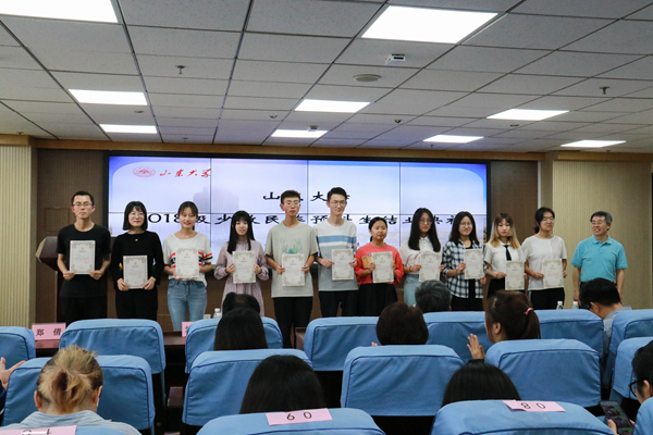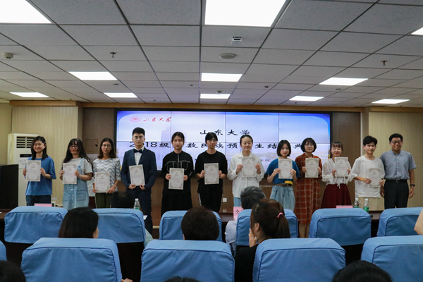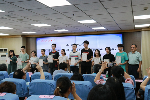 公司为预科生准备了结业纪念品,镌刻着学号的定制戒指、印有山大哲社印记的U盘和帆布袋,都承载着学院对预科生们的不舍与祝福。典礼最后,仝兴华、周作福、刘传勇、刘森林、郑倩、程胜利为少数民族预科生颁发结业证书。