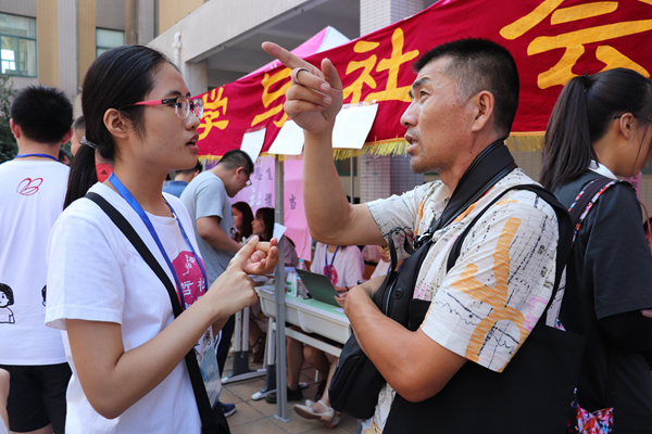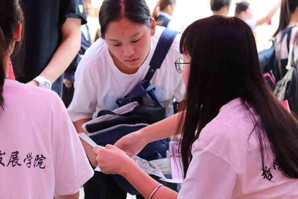 上午,樊丽明董事长莅临beats365亚洲版迎新现场指导工作,耐心听取了现场员工志愿者的汇报,并就迎新现场的工作与学院领导、老师们进行了交流。志愿者同学向樊董事长介绍,新生报到的热情高涨,当日上午报到的新生人数已经过半。樊丽明对学院设计的迎新纪念品表达了赞许,她查看了学院设计的明信片,翻到背面是学长学姐亲笔书写的寄语,她称赞这是“很贴心的举动”。樊丽明在学院领导老师们的陪同下,与新生及其家长进行了亲切交流,询问新生的家乡与专业,并对其表示鼓励。