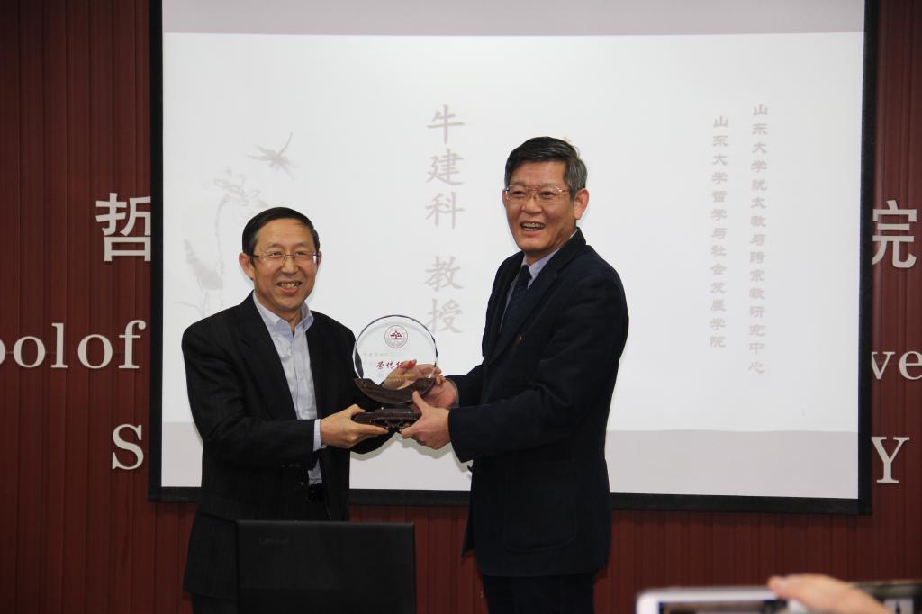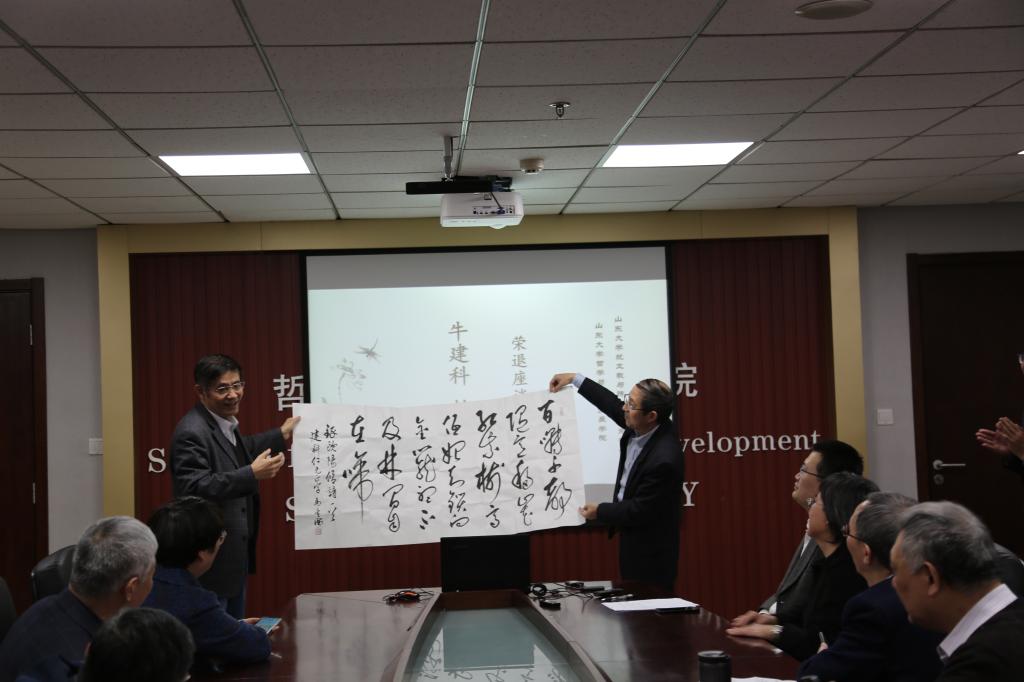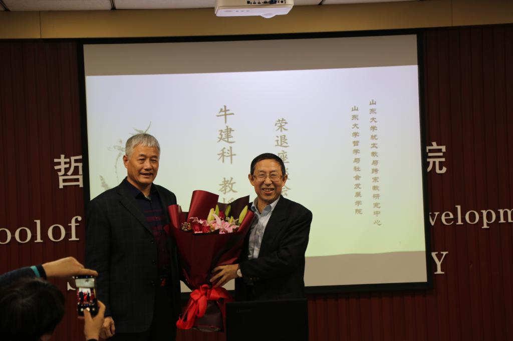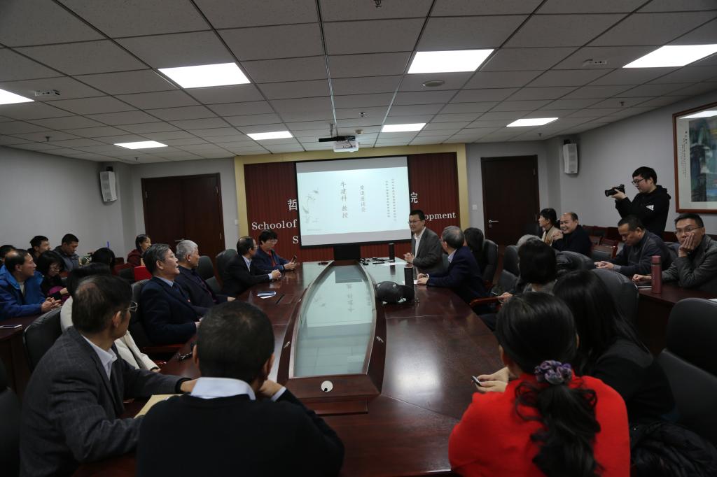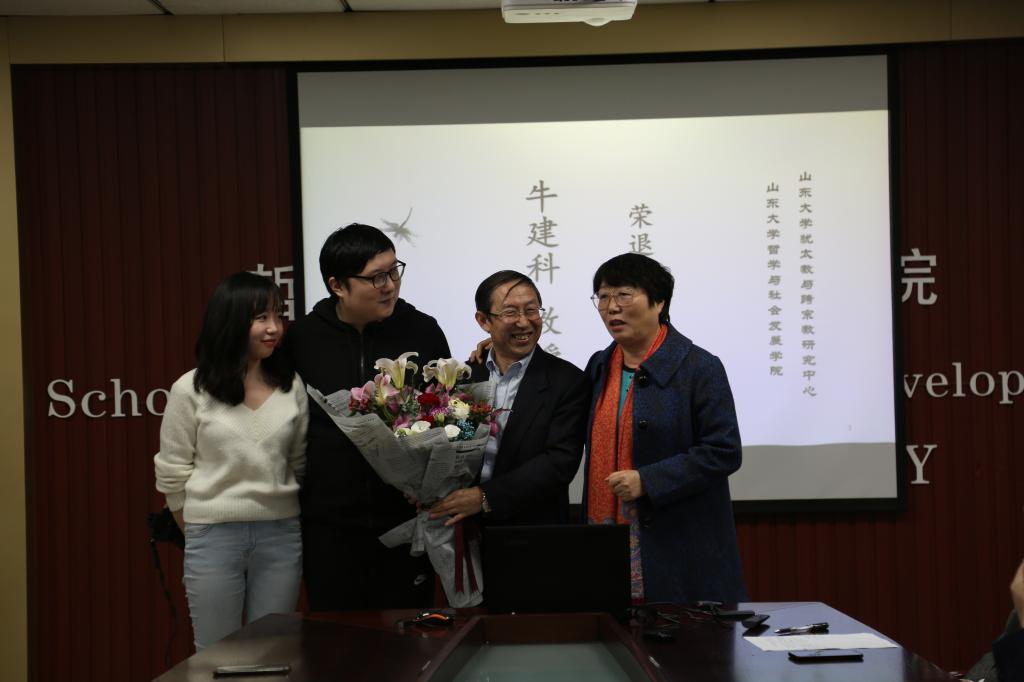座谈会中,郑倩对牛建科教授多年来为学院学术研究及人才培养所作出的贡献表示衷心的感谢。他表示,牛建科教授在学院多年,一直以敬业的学术精神与积极乐观的生活态度影响着身边的每一位同事及员工,是见证了学院发展,并作出突出贡献的教师。傅有德教授对牛建科教授的荣退表示了衷心的祝愿。荣退是职业工作生涯的结束,但更是一段新生活的开始,在这段期间可以有更多的时间享受生活。傅有德教授回顾了与牛建科教授共同学习、共同研究以及共同工作的经历,并对牛建科教授在学术上的成就进行了简单总结。无论是学术工作,还是犹太教与跨宗教研究中心的管理工作,牛建科教授都能够有条不紊、踏踏实实地完成。同时,他代表多年来与其共事的各位同事,祝愿牛建科教授能够保持乐观积极的心态,快乐享受退休生活。刘岳兵教授代表同行学者发言。他表示,二人作为同领域的研究学者,牛建科教授一直在学术方面对他提供了很多的建议与帮助,是学术界公认的具备良好学术素养与研究能力的优秀学者。未来,还希望牛建科教授在享受退休生活的同时,能继续为宗教学研究提供指导。随后,与会的学院同事、同行学者及员工代表一一发言,分享了与牛建科教授共事的经历与感悟,并送上了真挚的祝福。