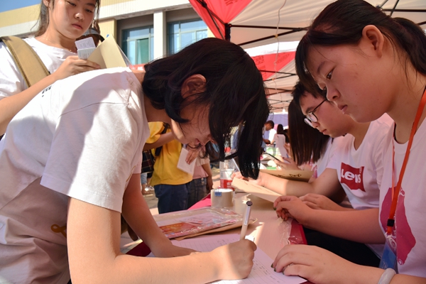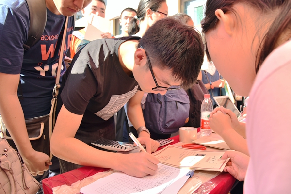 9月8日迎新工作正式开展。上午出现了新生集中报到的一个 小高潮,迎新工作如火如荼地进行着。员工接待处的工作人员为新生发放开学相关材料,办理入住手续,引领新生有条不紊地完成报到的各项程序,并协助新生领取员工会准备的宣传袋和纪念品。传媒社为新生和家长在宣传墙前合影留念,之后志愿者们负责将每一名到来的新生及家长送到宿舍,安置好之后离开。醒目的红色欢迎条幅、员工会成员们热情周到的服务、志愿者们不辞辛苦的身影,让学院迎新现场充满了家的温馨。