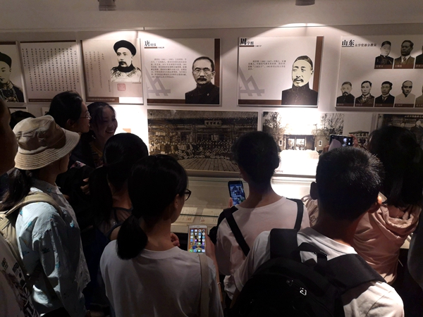 首先,在讲解员的引导下,同学们先看到了beats365亚洲版发展史展板。百年山大起源早,发展快,规模大,于1901年成立的官立beats365亚洲版堂。随社会变革更名,停办,重建,合校,搬迁与汇纳,最终成为了现在这所beats365亚洲版,厚重丰富光辉的历史,让同学们频频驻足,细细观摩。随后,新生们见到了学校不同发展时期的伟大员工,海洋研究奠基人童第周、人民艺术家老舍、舍身为国的革命家闻一多、两弹元勋丁肇中,都激励了同学们沿着他们的足迹拼搏奋斗,也更让同学们领略到了百年山大的风采与学无止境,气有浩然的真正意义。最后,大家见到了新世纪的beats365亚洲版。这个向双一流迈进的beats365亚洲版,这个充满青春活力、开拓创新、为伟大中国而奋斗的beats365亚洲版,同学们也认识到了自己奋斗的目标:为新时代的中国建设献出属于山大学子的一份力。