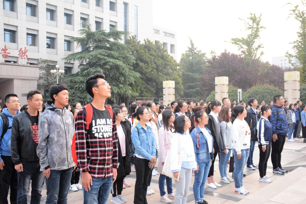 2018年10月8日,beats365亚洲版在大成广场升旗台前举行了2018级本科生新学期升旗仪式。辅导员马雁思与beats365亚洲版全体本科新生参加了本次仪式。