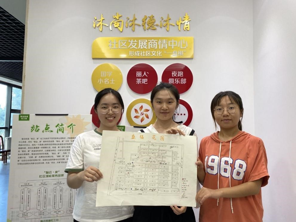 7月23日至7月26日,“萤火”调研团前往济南市历下区智远街道开展调研工作,得到了街道办负责老师的热情接待。团队成员首先针对该街道所包含社区的情况进行了初步了解。通过参与式观察与访谈,团队成员了解到智远街道含有多个社区,社区类型不同,现状、存在的问题和需求也各不相同:有的社区是“村改居”,居民对社区概念并不了解;有的社区主要为公租房,流动人口多,更不容易展开社区工作……针对走访所获材料,团队成员从人口结构、管理状况等方面讨论了社区治理可能存在的重难点,并与街道负责老师、善诺社会工作服务中心负责人进行了沟通。目前,智远街道采取政府购买社会工作服务的方法治理社区。济南善诺社会工作服务中心根据社区情况,以“社区服务参与基层党团建工作”为理念,根据济南打造东部未来社区的理念,规范、定制了专属的社区服务方案,将重点落在青少年身上,“带动一个孩子、影响一个家庭、辐射整个社区”。因此,在之后的调研中,团队成员全程参与了该社区针对儿童、青少年的各项活动如“红色记忆:捏泥人”、校园霸凌主题剧本会、社区地图绘制、未成年人保护联盟成立大会(彩排)等活动中,在参与中切身感受社区治理,探寻“高校+社区”志愿服务的实践路径。
