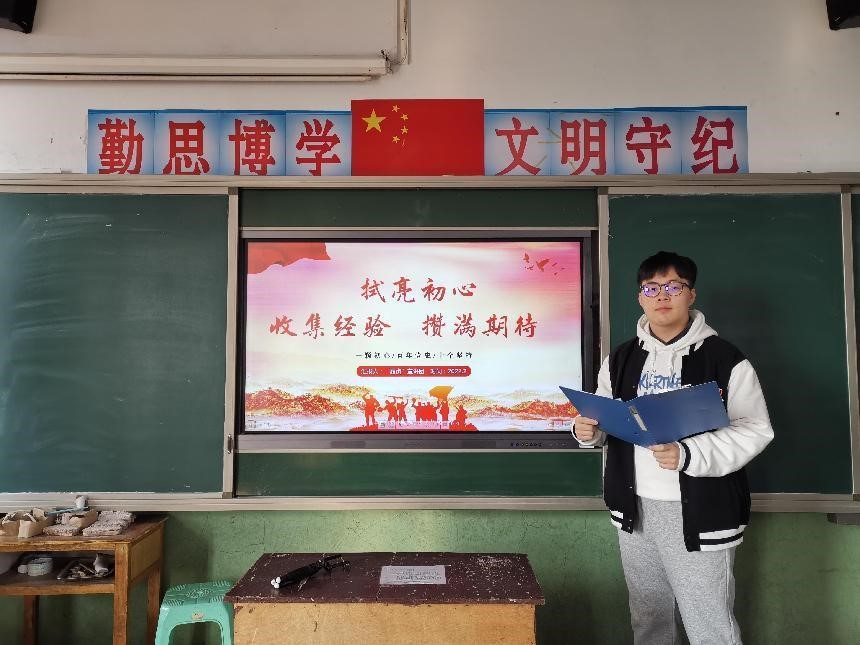 大峪小学位于河北省南部的峰峰矿区大峪镇,是一所普通的乡村小学。为适应疫情防控需要,此次活动采取线上线下相结合的形式开展,宣讲团成员郭昊天前往大峪小学,在教室中进行宣讲,同学们通过微信群直播线上观看。