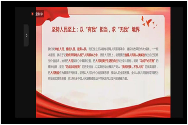 2月14日下午,宣讲会顺利进行。武妍同学从“拭亮初心”“收集经验”“攒满期待”三方面,以丰富的历史资料,带领听众回顾了中国共产党成立以来的百年历程,展示了中国共产党始终不渝的为人民谋幸福、为民族谋复兴的追求与使命,同时结合冬奥会等时下热点,以贴近年轻人生活的示例鲜活生动地说明了“十个坚持”的深刻内涵与时代意义。宣讲内容结合文字、视频等多种形式,主讲人武妍与参会志愿者积极互动,宣讲会气氛热烈。参会人员对履贞团队成员几经修改、精心准备的宣讲内容表达了高度认可和赞扬。