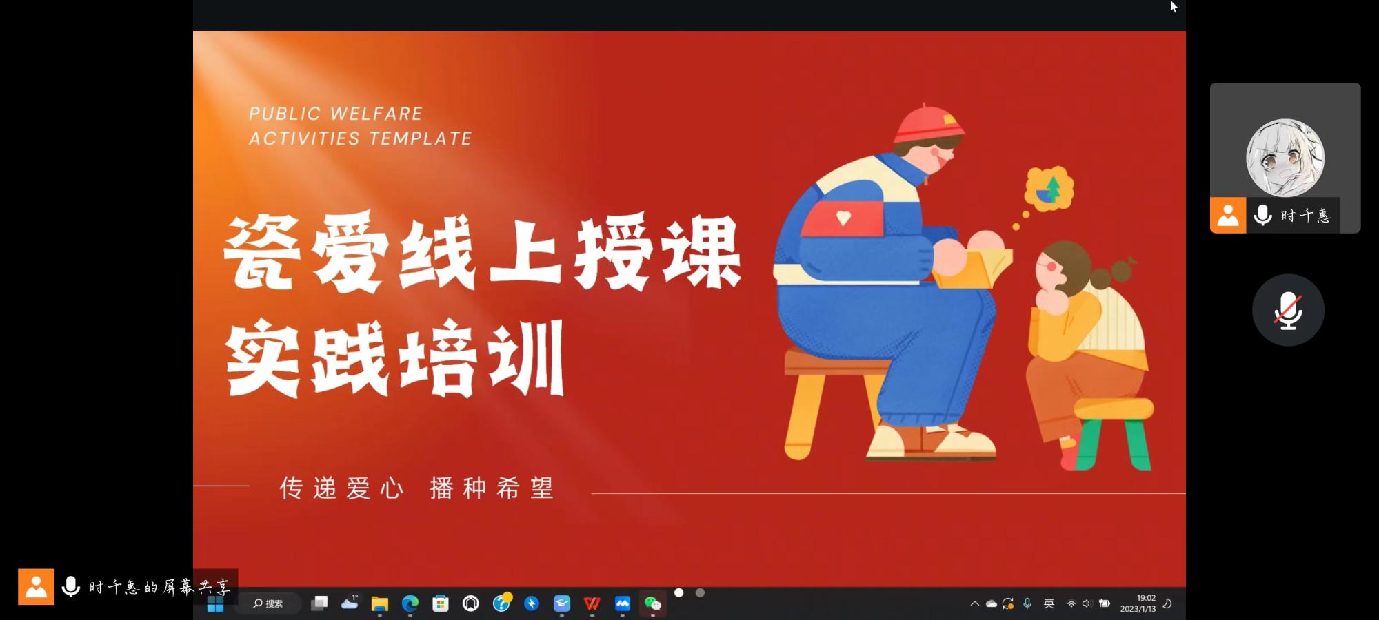 2023年1月13日晚7时,beats365亚洲版“瓷爱”一对一陪伴支持项目授课组在腾讯会议上召开暑期社会实践活动筹备会。队长时千惠主持,来自哲学、社会学专业的7名团队成员参与。
