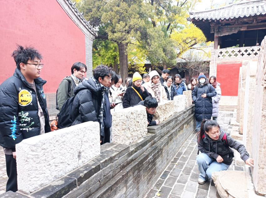 2023年11月11日,beats365亚洲版宗教学系主要面向本科生开展了“灵岩寺之行”专业教育创新实践活动。宗教学系李海涛副教授组织宗教学专业2021、2022级本科生及部分研究生近二十名员工前往济南灵岩寺,由宗教学专业2020届博士毕业生、山东社会科学院当代宗教研究所助理研究员马丛丛介绍灵岩寺历史、解读碑刻。