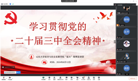 会议后半部分由星火硕博宣讲团代表发言,开展理论宣讲活动,旨在将学习贯彻党的二十届三中全会精神与加强党的建设、深化党建教育相结合。此次宣讲围绕着“深刻认识二十届三中全会的目标与意义”、“深入学习领会全会精神”以及“青年党员应以实际行动贯彻落实全会精神”三个方面展开。宣讲团号召员工党员进一步将思想和行动统一到习近平新时代中国特色社会主义思想和党中央决策部署上,营造学习宣传贯彻党的二十届三中全会精神的浓厚氛围。通过集体深入学习全会精神,团队表示未来将进一步加强党的创新理论的学习与武装,深入挖掘理论内涵,创新工作机制与工作方法,将理论学习与实践紧密结合,激发推动实践的内在动力。