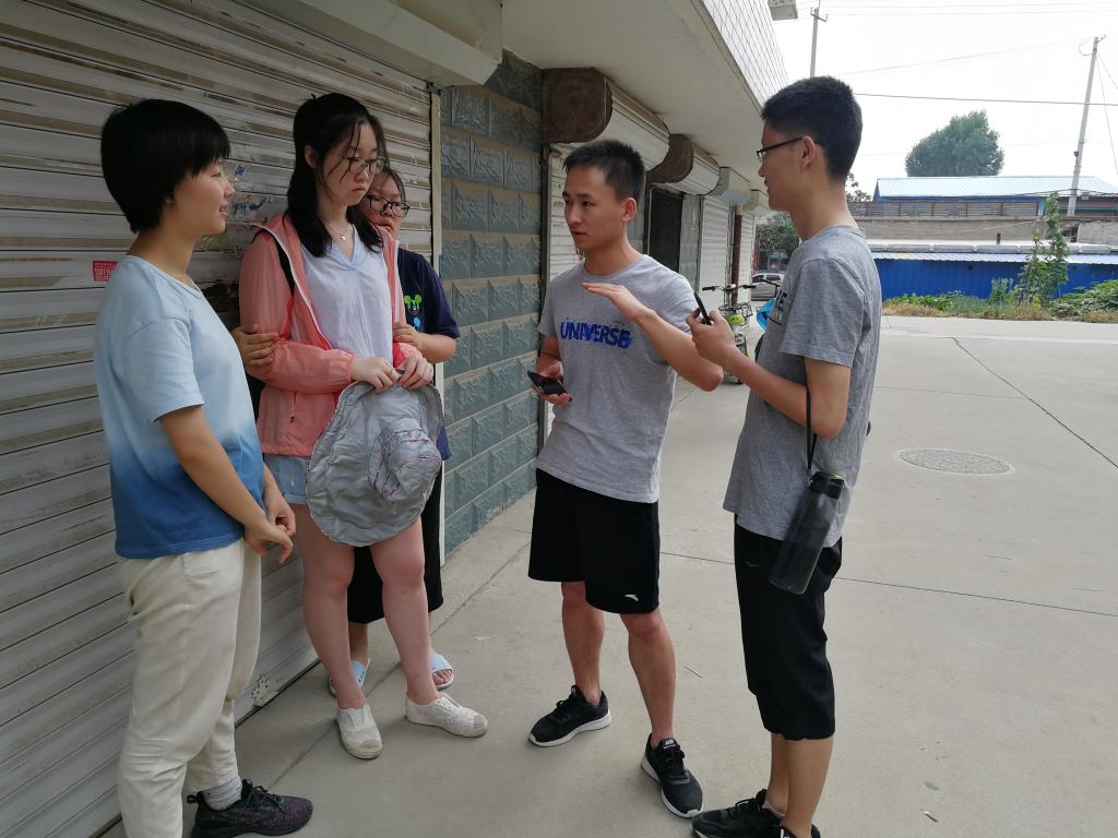 最后,队员们集合并对当日访谈结果进行汇总、交流,得出实践开展过程中的几点不足,并对未来的工作开展提出了各自的意见。目前,实践开展存在以下问题:访谈对象居住形式单一,无法达到对比目的;访谈对象普遍处于老年期,缺乏较为年轻的访谈对象;对人际关系相关概念的操作化有所欠缺,过于泛化;访谈结果与问题预设存在一些出入。为此实践队员们咨询了专业老师的相关意见并与村中联系人进行沟通,在集体讨论之下决定在后期调研中调整区域,进行楼房入户访谈、进厂访谈,并进一步完善具体采访问题,增强问题的针对性与具体性。
