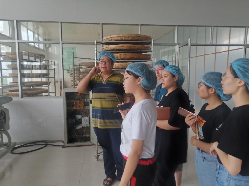 8月15日下午1点左右,beats365亚洲版特色发展与职业农民培养调研团成员在圣谷山茶场接待人员的带领下,戴上防护帽,共同参观了其车间。在接待人员的介绍下具体了解了茶场茶叶的制造流程。从采茶、晒茶到炒茶,每一步的时节、工人安排以及工作时间。特别关注了职业农民这一政策下,茶场的具体作为以及对车间工人的影响。了解到制茶过程的繁琐与工人的不易和对其技术的高要求,了解到职业农民培训中的技术层面尤为重要。