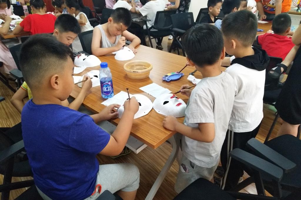 在访谈中,侯氏社火脸谱的传承人今年计划将侯氏社火脸谱与中国画联系,进行创新性继承。“传承要跟得上时代的脉搏才能有活力”,李小兰女士甚至向我们询问如何在抖音上录制小视频并发到网上,以期获得更多人对于侯氏社火脸谱的关注。侯志新夫妇还表示在周围三个社区的青少年活动中心,侯氏社火脸谱都不定期举行公益活动,主要面向社区内的中小员工开设讲解和体验课程。离开时,看到孩子们自豪的带着自己画的脸谱回家,调研团成员们对于非遗文化的传承有了更多的信心。
