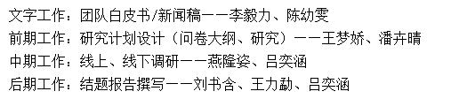 此次开题会议持续近2个小时,所有成员就前期准备工作的成果和问题进行统一的信息互通和交流,组长吕奕涵提出两种实践活动形式,会议过程中就两种活动形式的利弊进行了民主决议,会议结束后,团队一致决定以活动不同时期的时间节点为单位,分为不同的调研小队,定期组织组会,对每个时间节点内的问题和信息进行整合和互通。