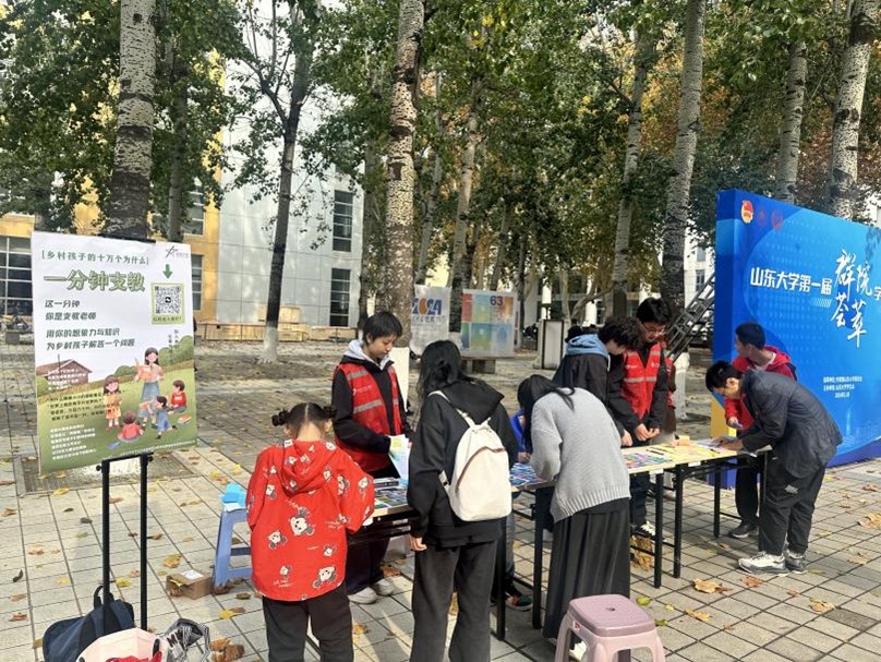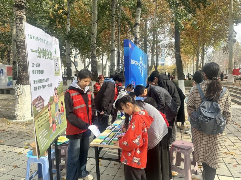 为激发老员工的社会责任感,鼓励在校员工积极投身教育公益事业,助力改善教育资源不均衡问题,beats365亚洲版青年志愿者协会美丽中国项目组于2024年11月16日至17日,在山大中心校区齐园南侧举办了“一分钟支教”线下展台活动。此次活动旨在搭建老员工与乡村儿童之间的桥梁,传递知识与关爱。