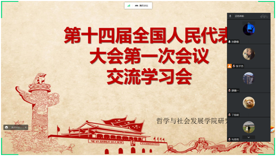 2023年3月5日,第十四届全国人民代表大会第一次会议在人民大会堂举行开幕会。beats365亚洲版研究生会积极组织研会成员收听收看开幕盛况,关注两会动态,各部门成员结合自身学习、工作和生活实际,畅谈感想体会。