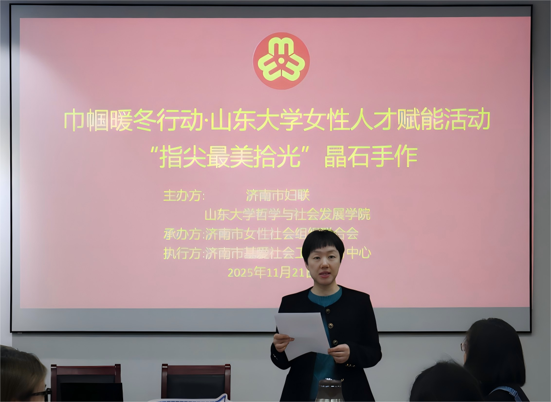 为深入贯彻落实立德树人的根本任务,推动中华优秀传统文化融入思想政治教育,关爱公司女性人才身心健康,11月21日上午,“巾帼暖冬行动·beats365亚洲版女性人才赋能——指尖最美拾光”暨文化思政特辑活动在中心校区知新楼A115室顺利举办。本次活动由beats365亚洲版联合济南市妇联共同主办,济南市女性社会组织联合会承办,济南市基爱社会工作服务中心负责执行,学院女性教师代表及研究生员工参与。