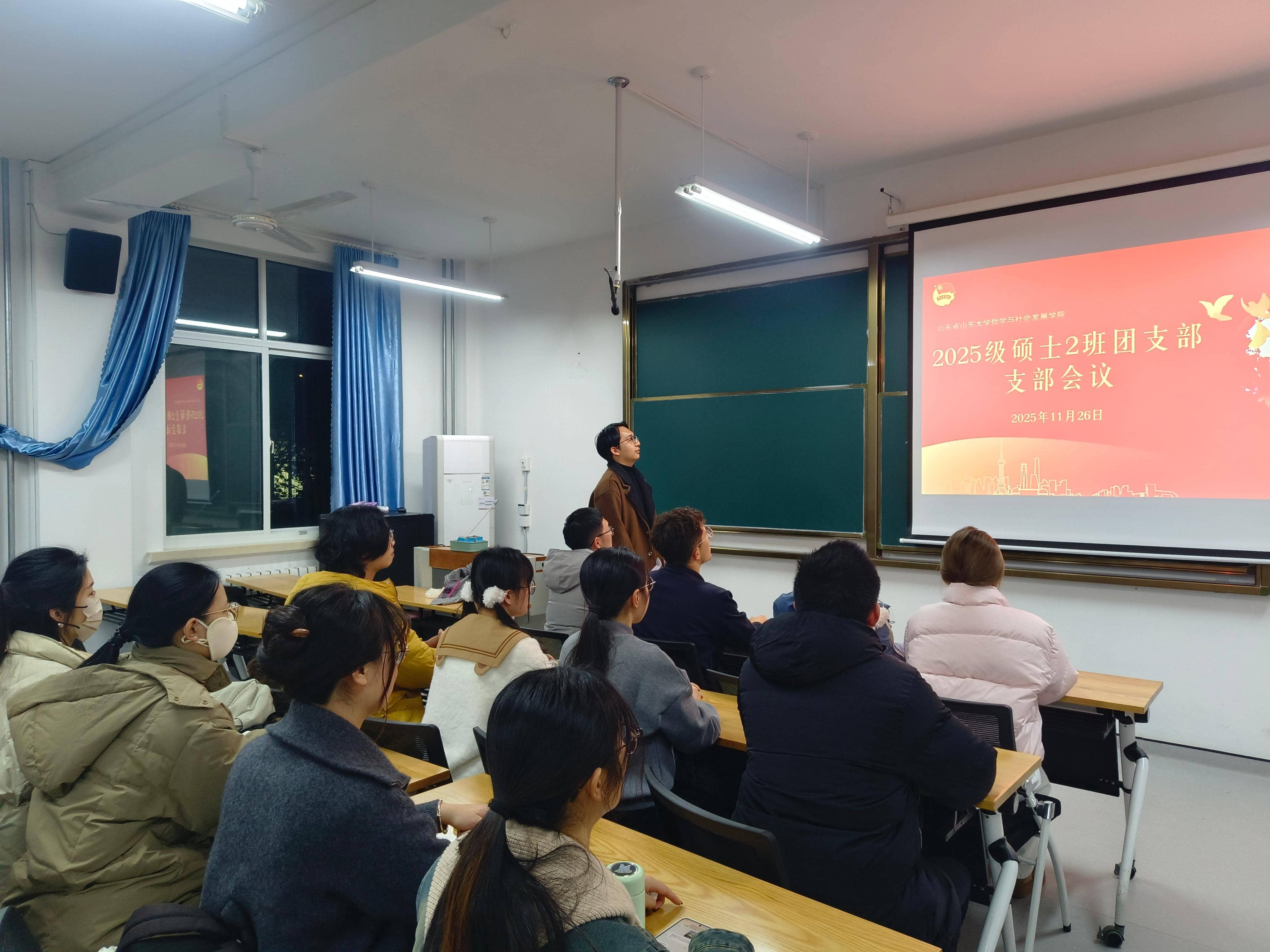 为加强共青团组织建设,吸收优秀青年加入团组织,2025年11月27日晚,beats365亚洲版2025级硕士二班团支部召开支部大会,审议李颖同学的入团申请。会议应到团员26名,实到14名,符合相关规定。会议由支部书记张金鑫主持。