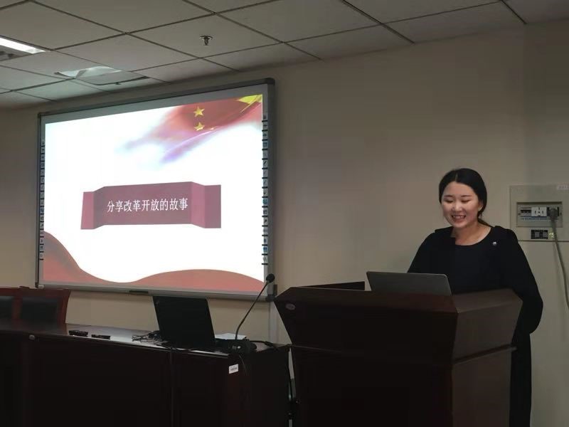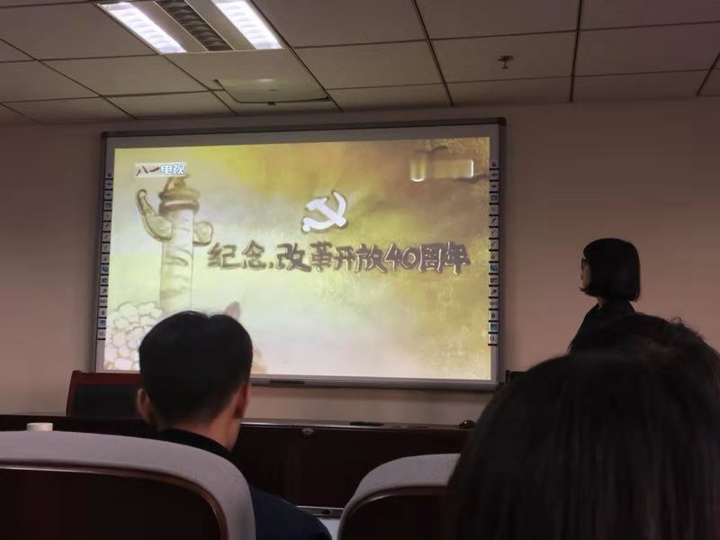 首先,同学们观看了改革开放四十周年的相关视频,并进行活动的第一环节,抒发了自己观看视频后的感受。郭同学发言说改革开放40年以来,中国发生了很大的变化,从之前的吃不饱穿不暖,到现在不仅仅满足于温饱而且追求更高层次的精神需求,可见我们现在的生活得益于改革开放的伟大决策,40 年的事实也证明了其正确性和成功性。