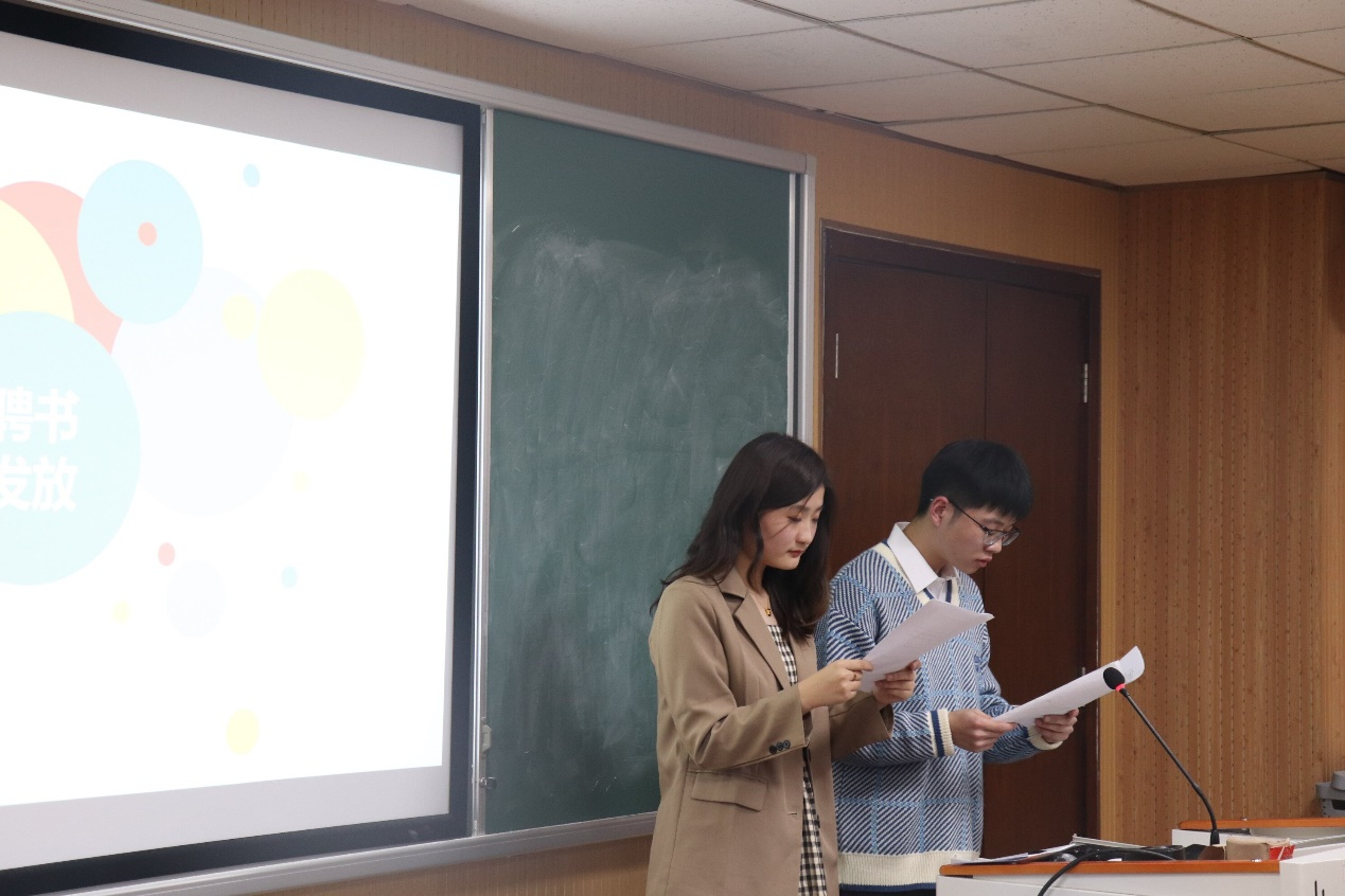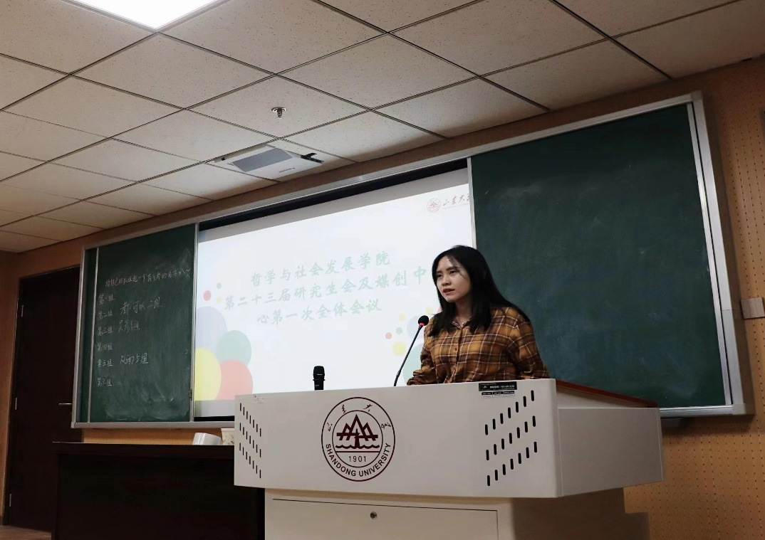 会议中,研究生会指导老师封莹老师、新生代表李润青同学、研究生会主席陈滢如学姐依次上台致辞发言,封莹老师主要从员工工作的角度出发,给新一届研会成员提出了几点要求和新的期望,言语间透出对同学们的关怀与期盼;李润青同学从自身学习感悟为切入讲出了新一届研究生必将坚定努力走好新征程的心声;陈滢如学姐从过去一年自身在研会的收获与成长对大家进行了分享,温情满满。