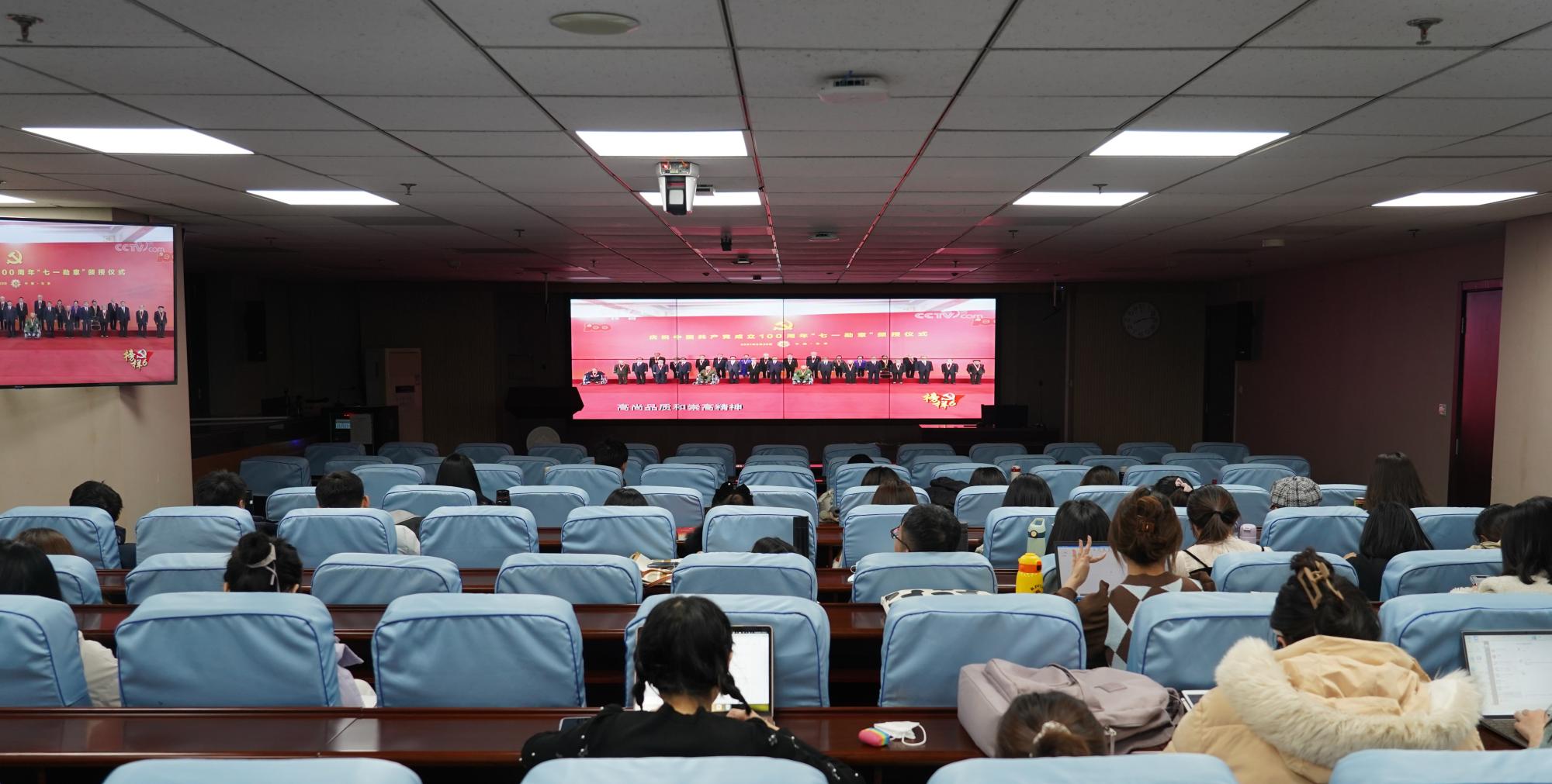2021年12月8日晚,学院组织师生党员集体观看由中共中央组织部和中央广播电视总台联合录制的《榜样6》(建党100周年特别节目)。