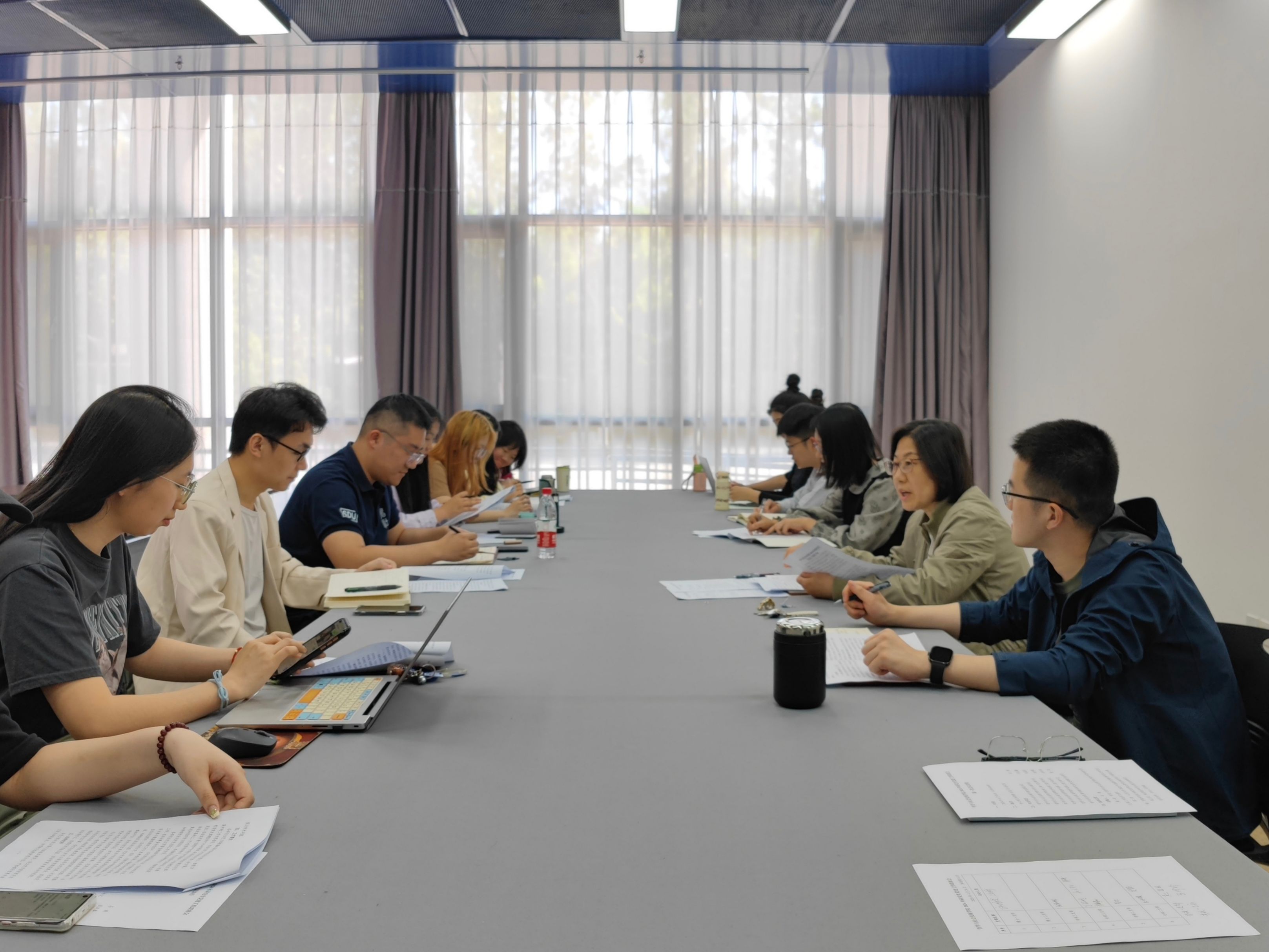 马燕带领大家研究讨论《beats365亚洲版研究生党支部工作指导方案》。她建议,各研究生党支部在党支部活动的组织形式上要坚持支部共建或师生联动等形式,形成党建合力;在活动内容上,要结合支部实际,积极组织和广泛开展“主题学”“专项学”和“实践学”等支部活动;在创新方向方面,要充分体现党建工作的品牌性、创新性和持续性。各支部要立足于党支部工作组织形式的优化,创新和丰富党支部活动内容,全力打造融入山大精神、体现哲社特色、结合支部实际的“1+3+N”党支部建设模式。